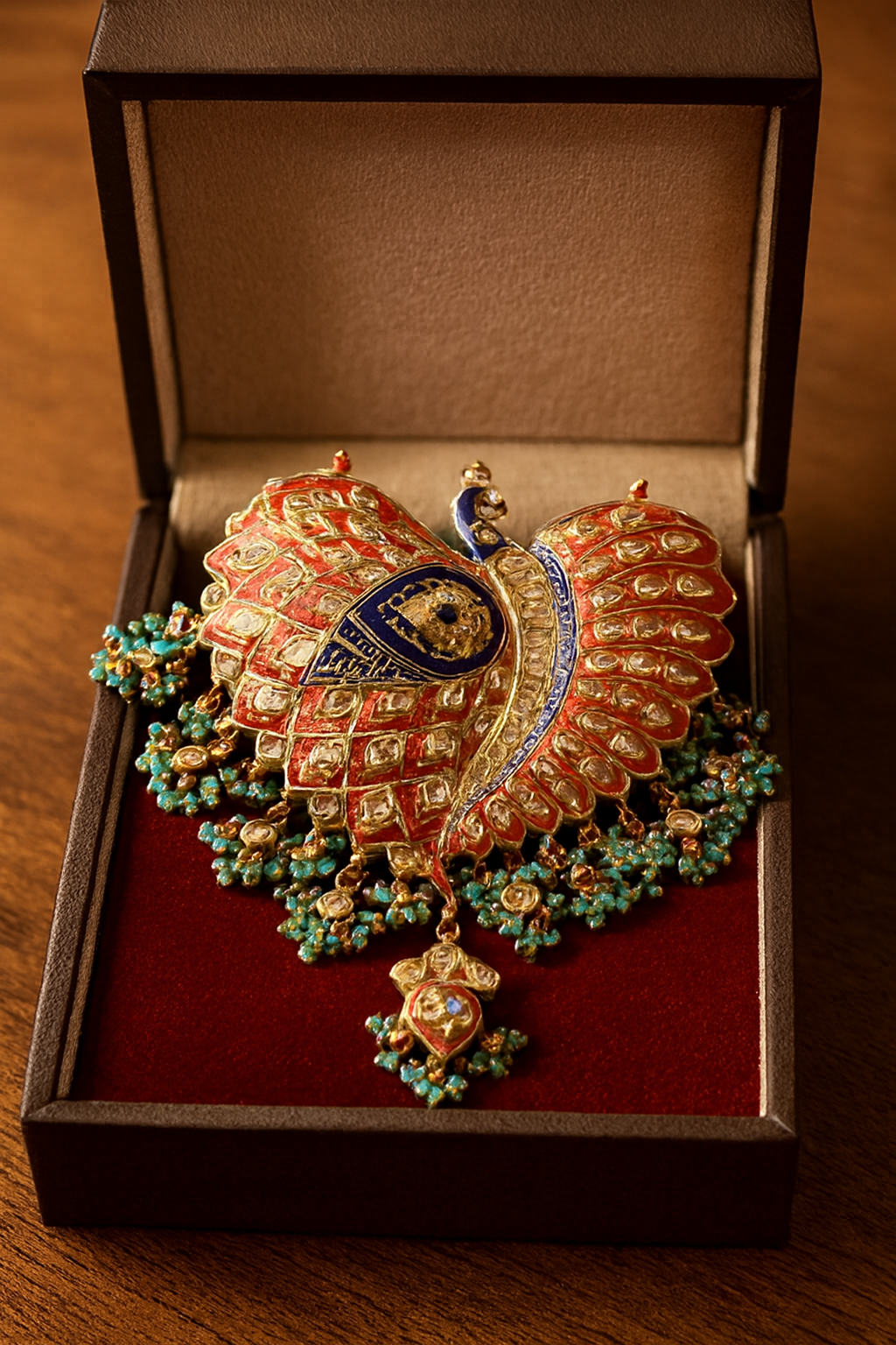 This pendant is more than an ornamentโit is a poetic offering of beauty, symbolizing prosperity, joy, and cultural grandeur. Perfect for weddings, festive occasions, and ceremonial adornment, the Moranjali Pendant stands as a timeless heirloom, a jewel of heritage, and a crown of elegance.