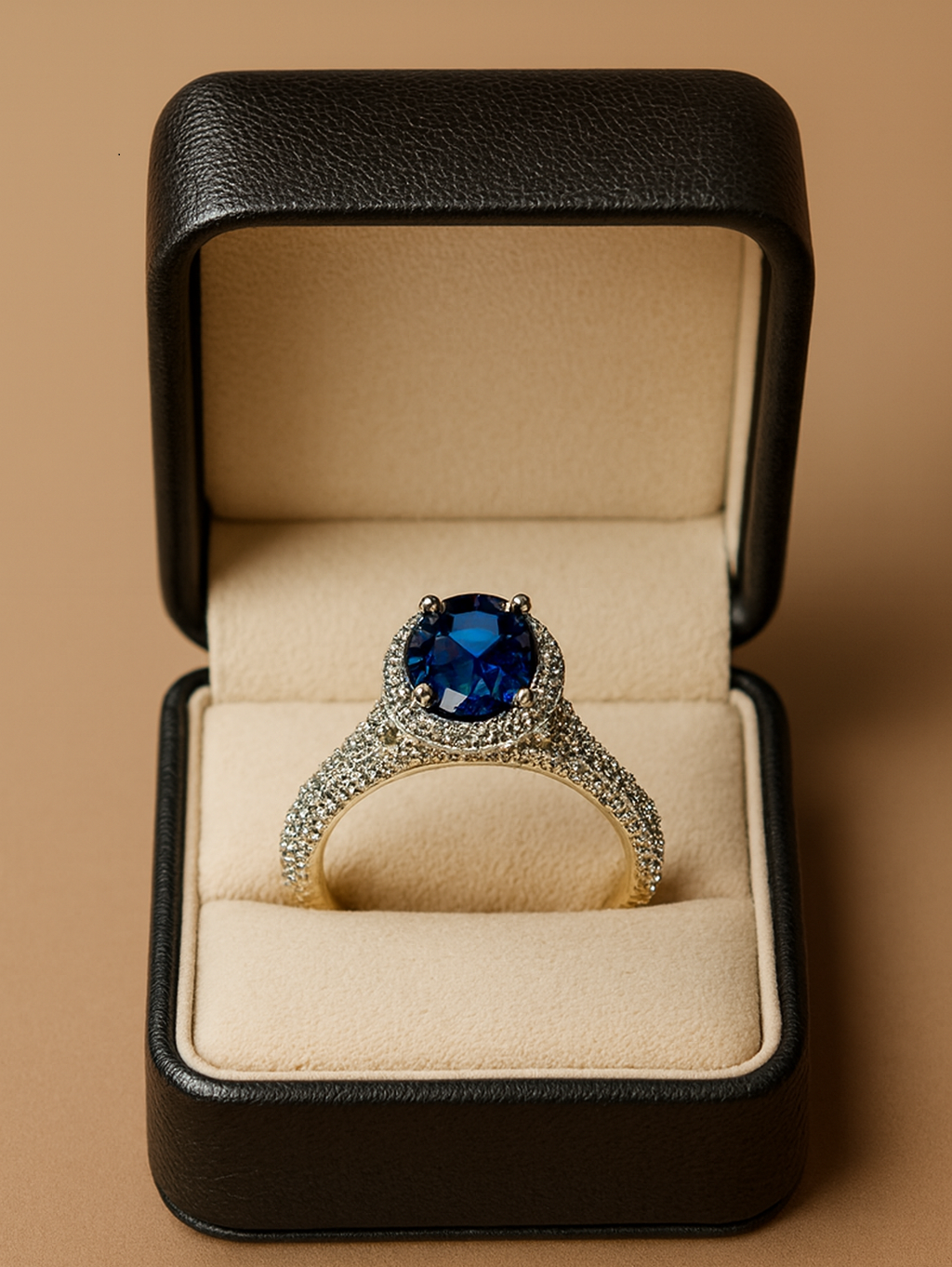 TheRing is a breathtaking creation that celebrates the union of classic design and modern sophistication. At its heart lies a luminous oval-cut sapphire, radiating a deep, velvety blue that symbolizes loyalty, wisdom, and eternal love. This centerpiece is gracefully embraced by a halo of brilliant round diamonds, each meticulously set to enhance the sapphireโs glow and create a dazzling aura of light.